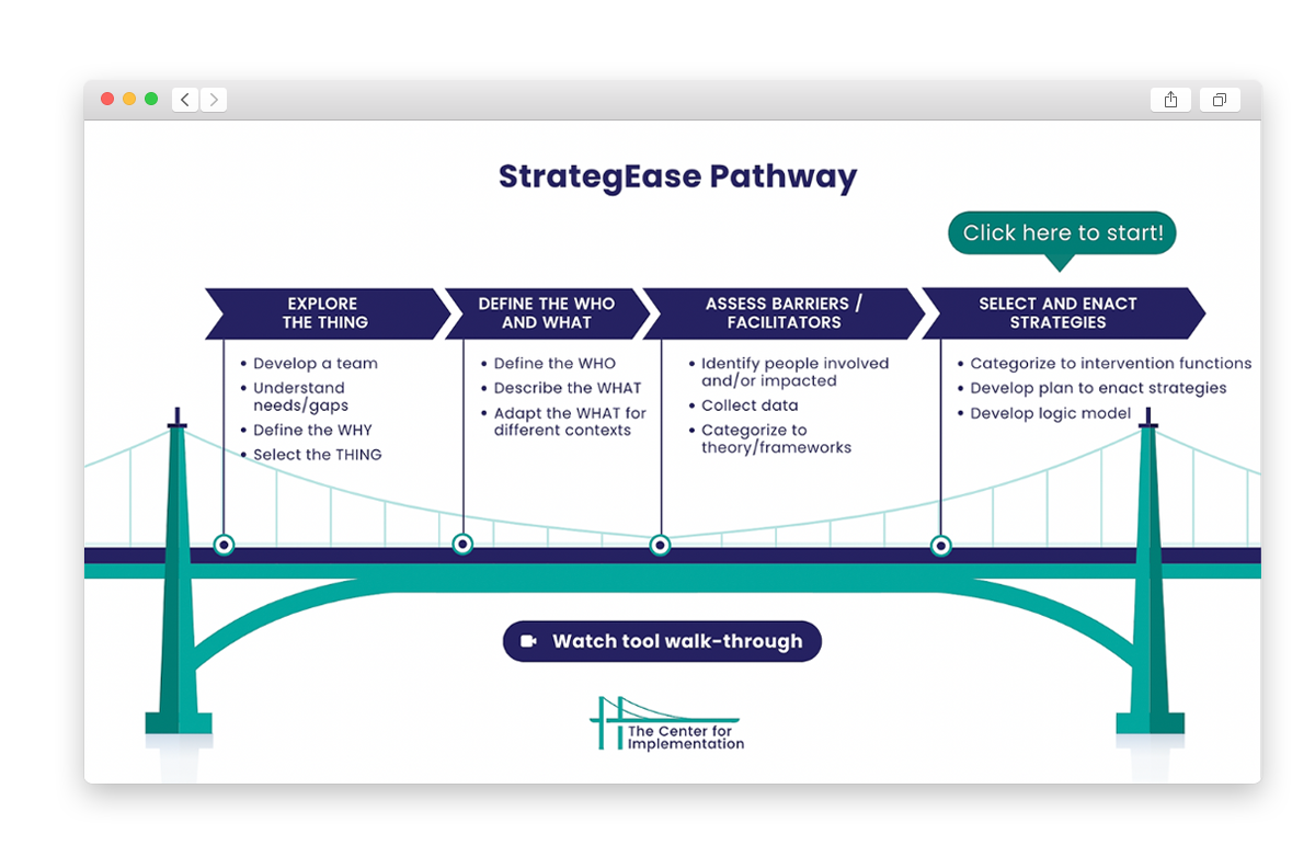 We go beyond simply building a tool: We work with you to identify barriers, choose the right strategies, and embed implementation science into both the tool’s design and its content.