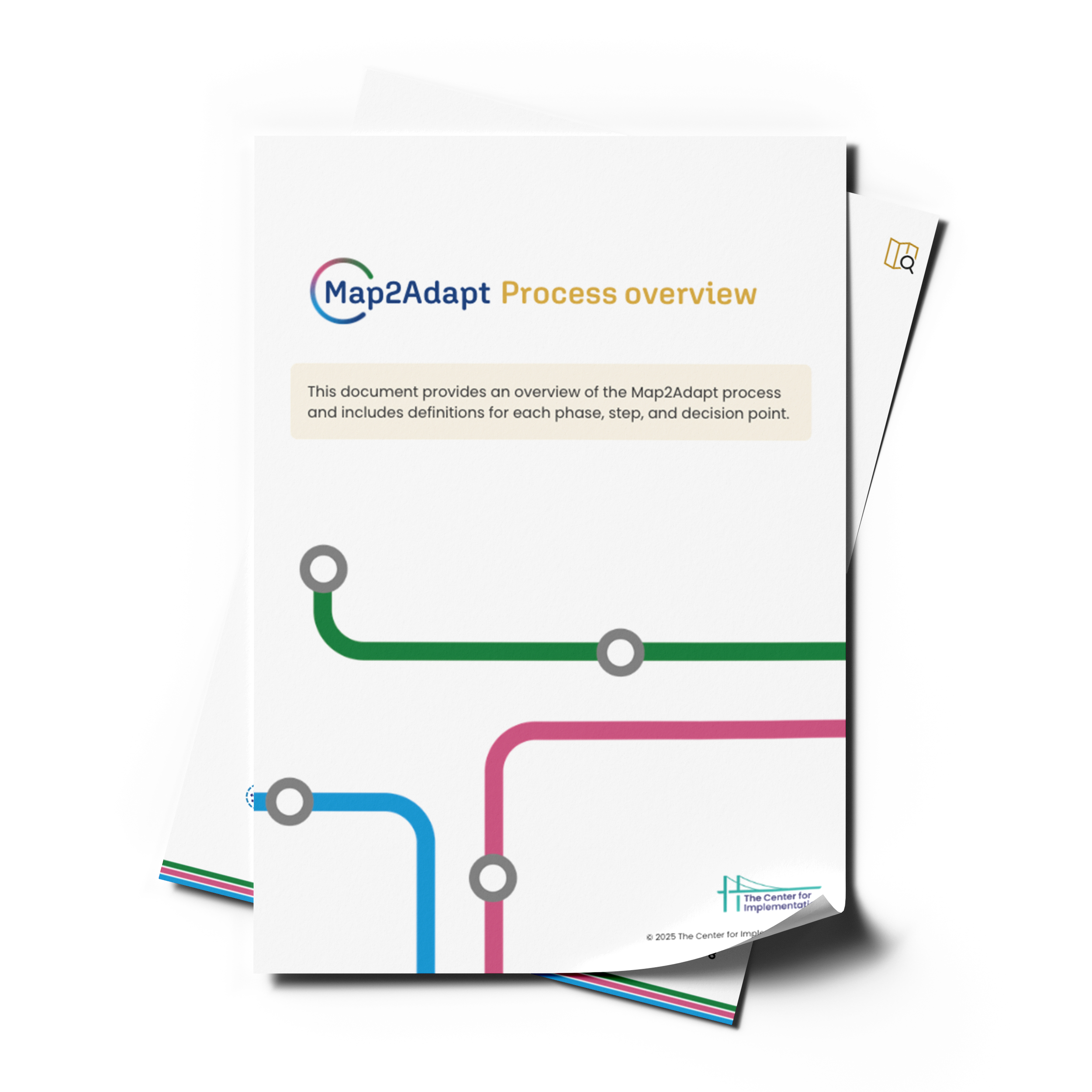 Moore, J. E. (2025). Map2Adapt: A Practical Process and Tool for Planning Adaptations Across Contexts. Implementation in Action Bulletin. Retrieved from https://thecenterforimplementation.com/toolbox/map2adapt-a-practical-process-and-tool